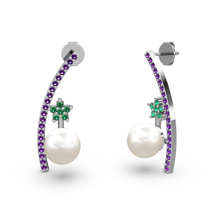 Inci, ametist ve yeşil kuvars 14 ayar beyaz altın küpe