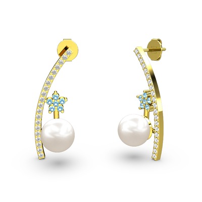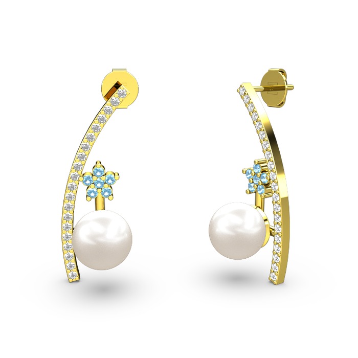 Inci, beyaz zirkon ve akuamarin 925 ayar altın kaplama gümüş küpe