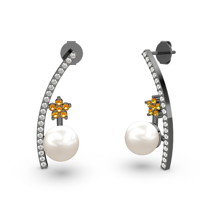 Inci, beyaz zirkon ve sitrin 925 ayar siyah rodyum kaplama gümüş küpe