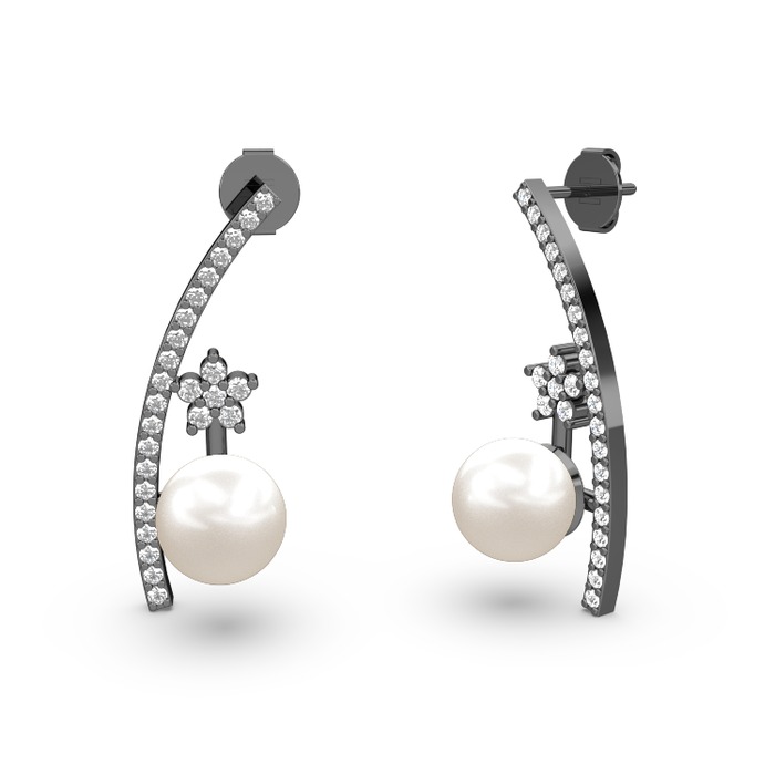 Inci ve beyaz zirkon 925 ayar siyah rodyum kaplama gümüş küpe