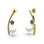 Inci, dumanlı kuvars ve lab safir 14 ayar altın küpe