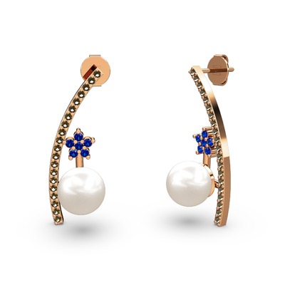 Inci, dumanlı kuvars ve lab safir 925 ayar rose altın kaplama gümüş küpe