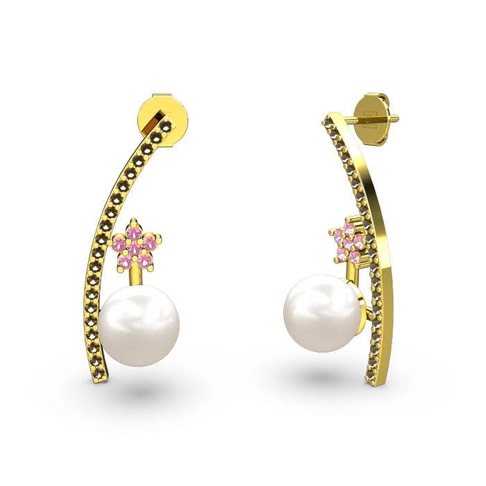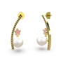 Inci, dumanlı kuvars ve pembe kuvars 18 ayar altın küpe