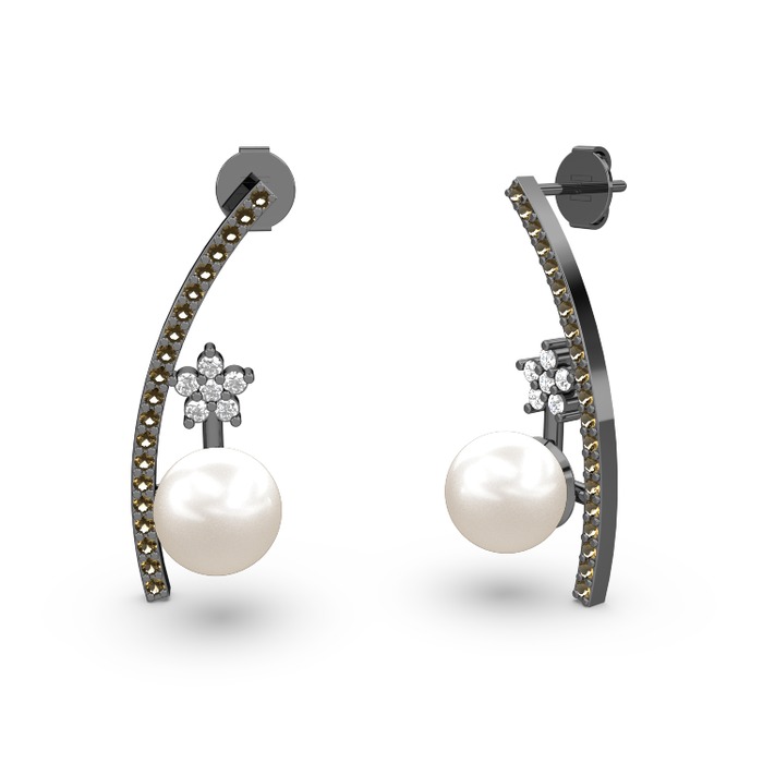 Inci, dumanlı kuvars ve pırlanta 925 ayar siyah rodyum kaplama gümüş küpe (0.44 karat)