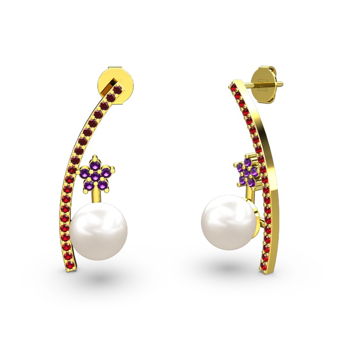 Inci, garnet ve ametist 925 ayar altın kaplama gümüş küpe