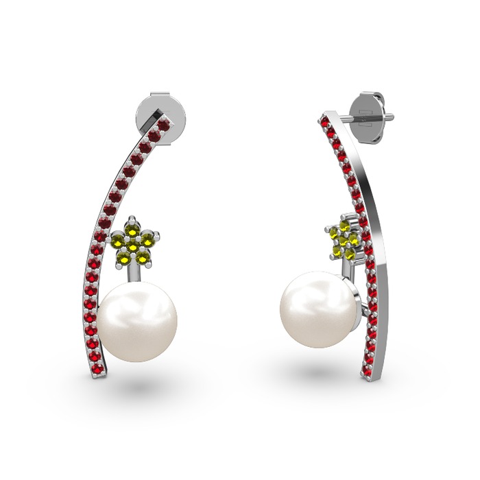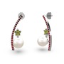 Inci, garnet ve peridot 8 ayar beyaz altın küpe