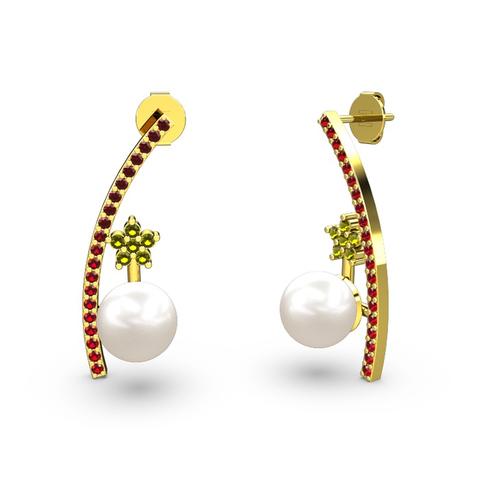 Inci, garnet ve peridot 925 ayar altın kaplama gümüş küpe