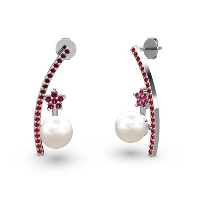 Inci, garnet ve rodolit garnet 14 ayar beyaz altın küpe