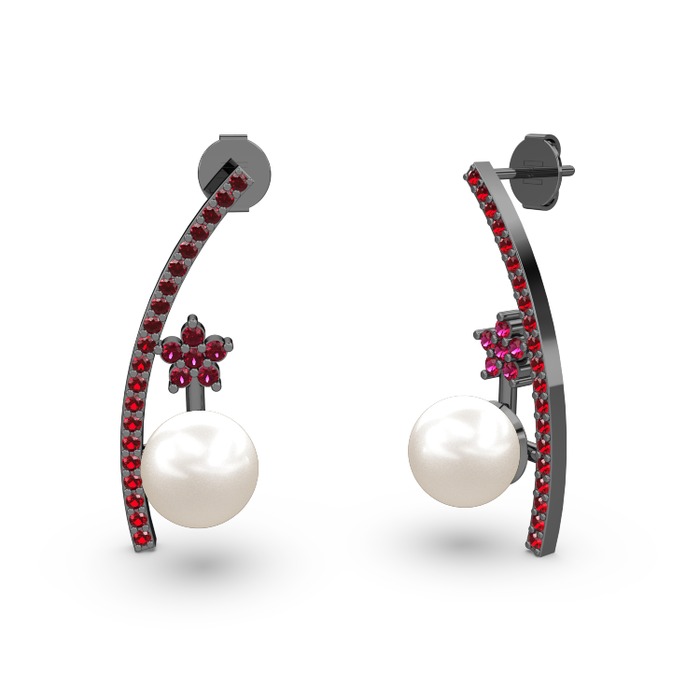 Inci, garnet ve rodolit garnet 925 ayar siyah rodyum kaplama gümüş küpe