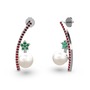 Inci, garnet ve yeşil kuvars 8 ayar beyaz altın küpe