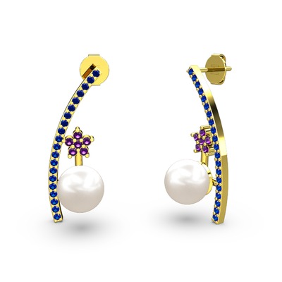 Inci, lab safir ve ametist 18 ayar altın küpe
