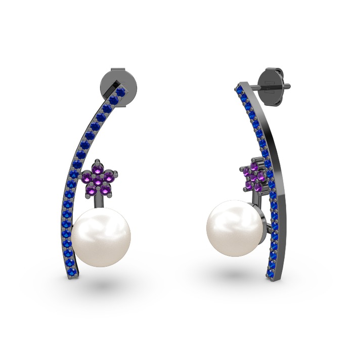Inci, lab safir ve ametist 925 ayar siyah rodyum kaplama gümüş küpe