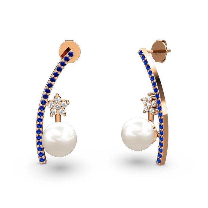 Inci, lab safir ve beyaz zirkon 18 ayar rose altın küpe
