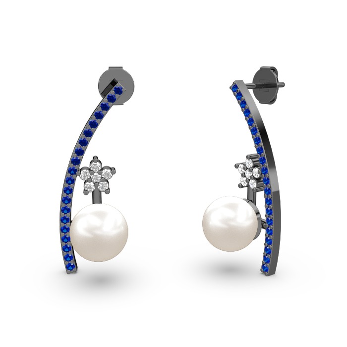 Inci, lab safir ve beyaz zirkon 925 ayar siyah rodyum kaplama gümüş küpe