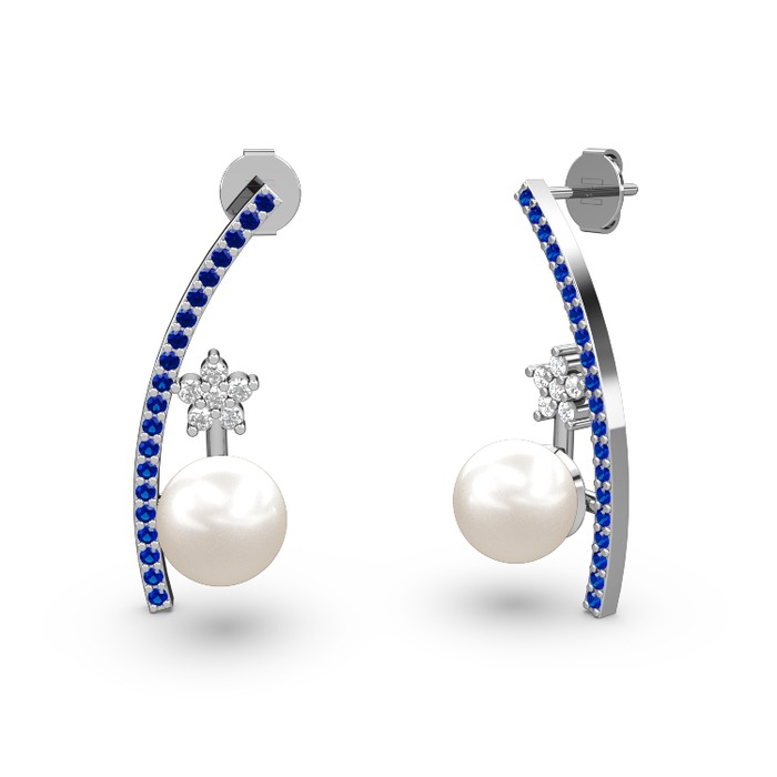 Inci, lab safir ve pırlanta 18 ayar beyaz altın küpe (0.44 karat)