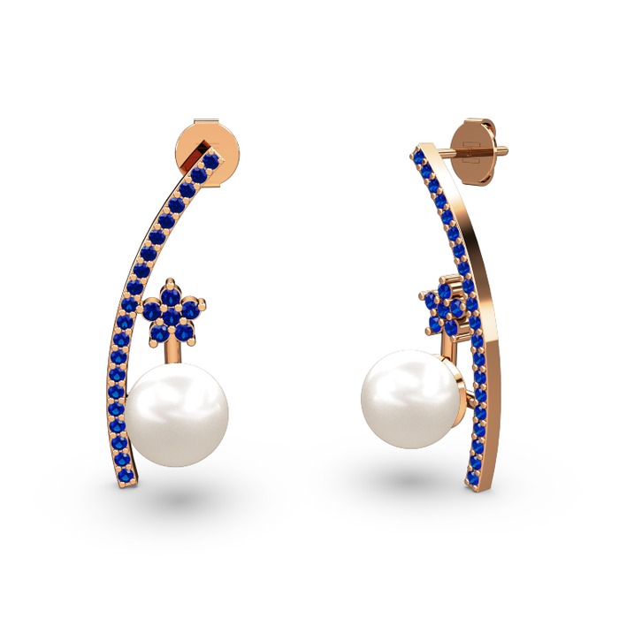 Inci ve lab safir 925 ayar rose altın kaplama gümüş küpe