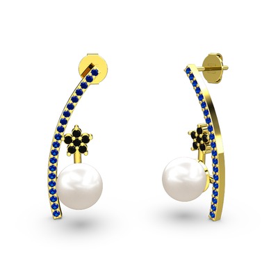 Inci, lab safir ve siyah zirkon 8 ayar altın küpe