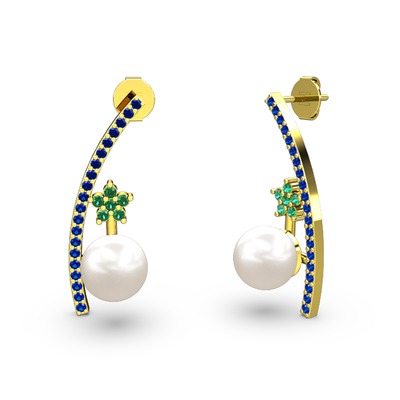 Inci, lab safir ve yeşil kuvars 14 ayar altın küpe