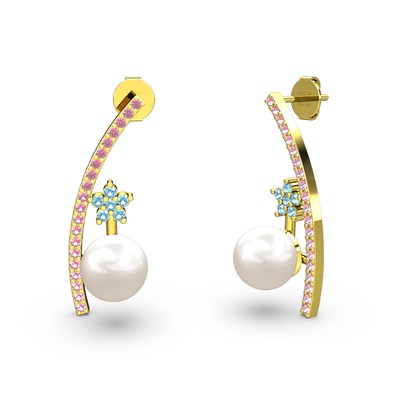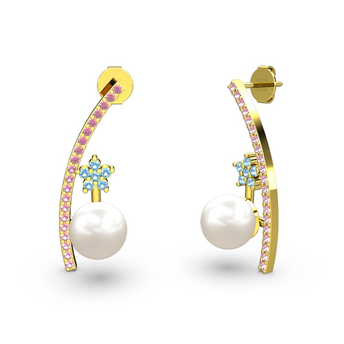 Inci, pembe kuvars ve akuamarin 925 ayar altın kaplama gümüş küpe