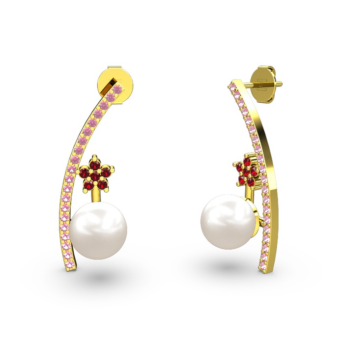 Inci, pembe kuvars ve garnet 18 ayar altın küpe