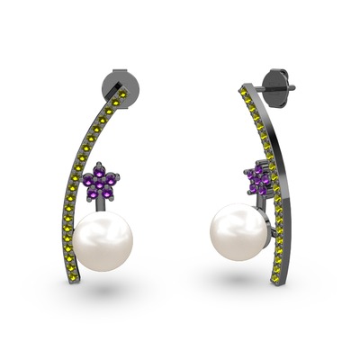 Inci, peridot ve ametist 925 ayar siyah rodyum kaplama gümüş küpe