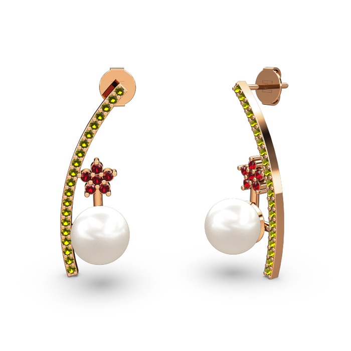 Inci, peridot ve garnet 925 ayar rose altın kaplama gümüş küpe