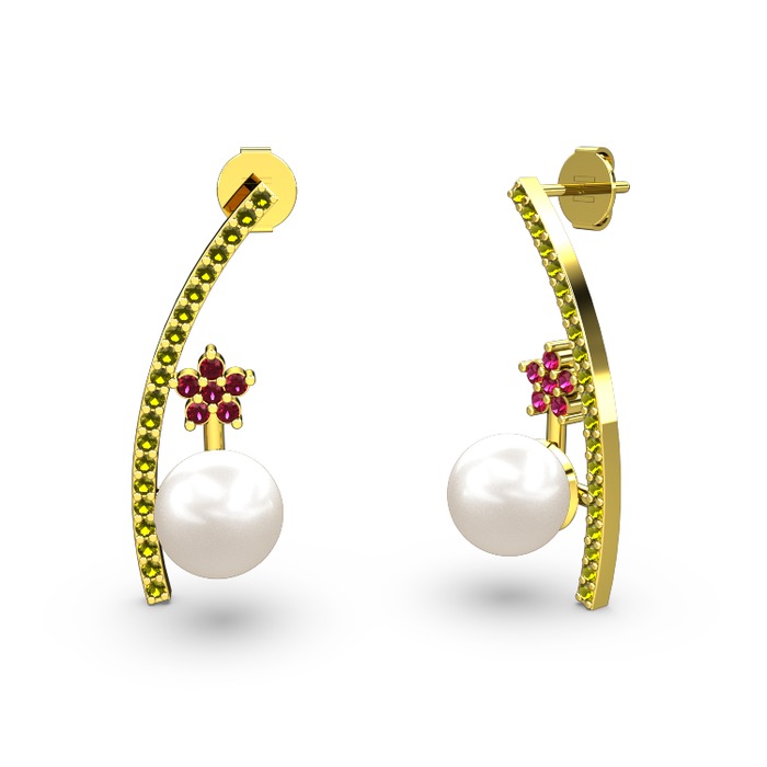 Inci, peridot ve rodolit garnet 925 ayar altın kaplama gümüş küpe