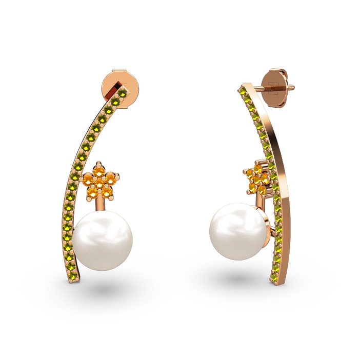 Inci, peridot ve sitrin 14 ayar rose altın küpe