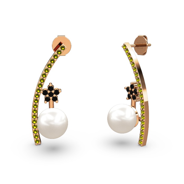 Inci, peridot ve siyah zirkon 8 ayar rose altın küpe