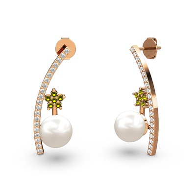 Inci, pırlanta ve peridot 14 ayar rose altın küpe (0.18 karat)