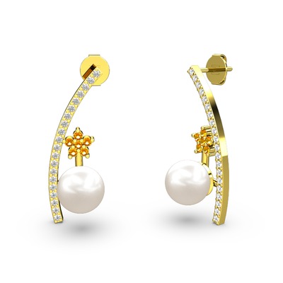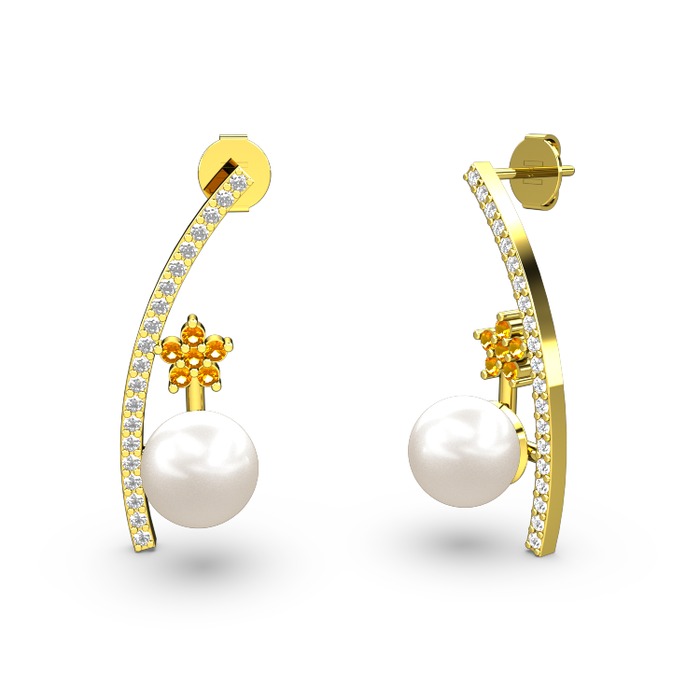 Inci, pırlanta ve sitrin 925 ayar altın kaplama gümüş küpe (0.18 karat)