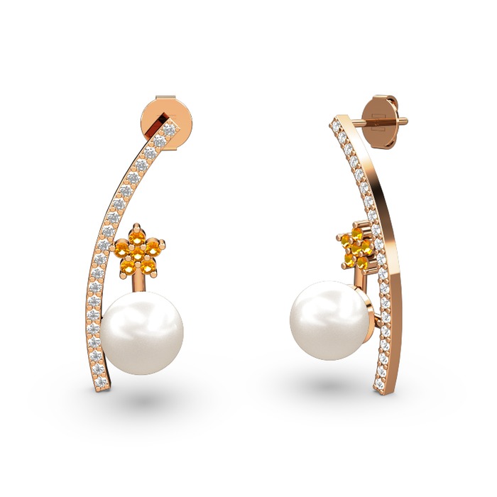 Inci, pırlanta ve sitrin 925 ayar rose altın kaplama gümüş küpe (0.18 karat)