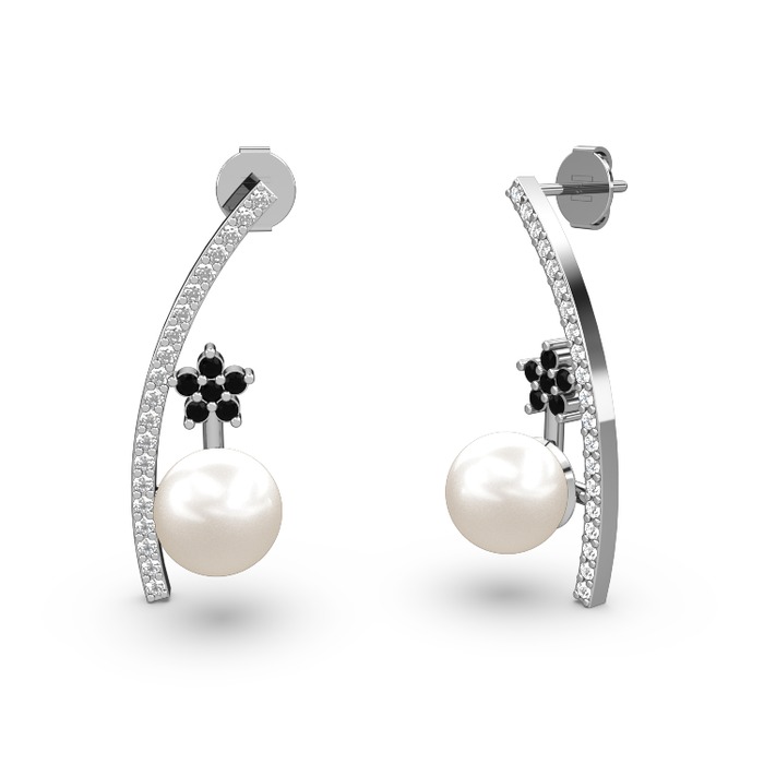 Inci, pırlanta ve siyah zirkon 18 ayar beyaz altın küpe (0.18 karat)
