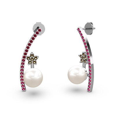 Inci, rodolit garnet ve dumanlı kuvars 14 ayar beyaz altın küpe