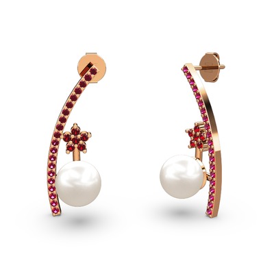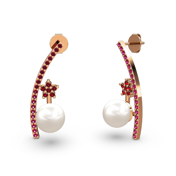 Inci, rodolit garnet ve garnet 8 ayar rose altın küpe