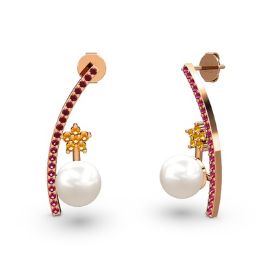 Inci, rodolit garnet ve sitrin 14 ayar rose altın küpe