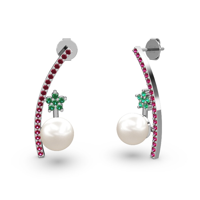 Inci, rodolit garnet ve yeşil kuvars 14 ayar beyaz altın küpe