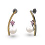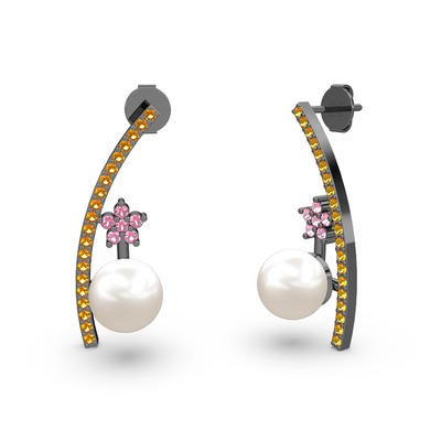 Inci, sitrin ve pembe kuvars 925 ayar siyah rodyum kaplama gümüş küpe