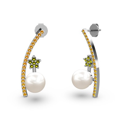 Inci, sitrin ve peridot 8 ayar beyaz altın küpe