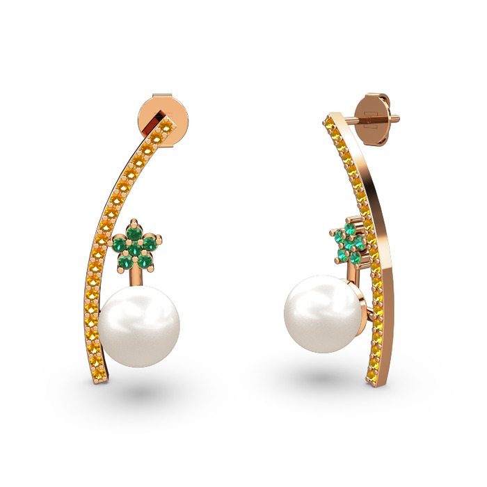 Inci, sitrin ve yeşil kuvars 14 ayar rose altın küpe