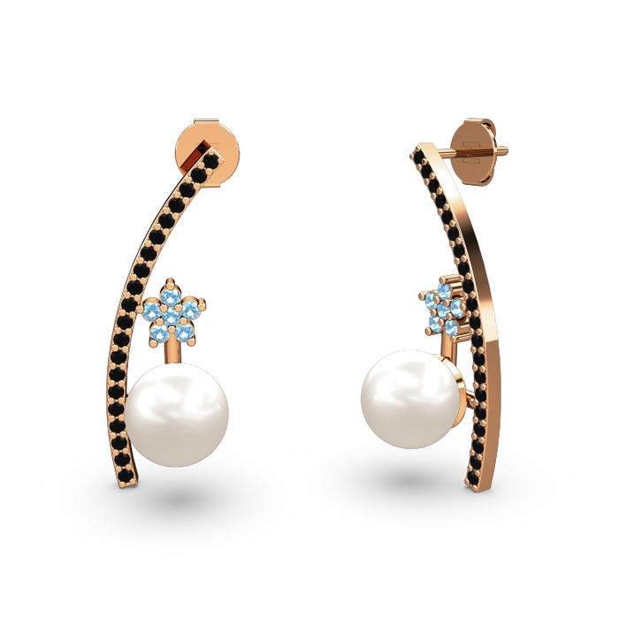 Inci, siyah zirkon ve akuamarin 18 ayar rose altın küpe