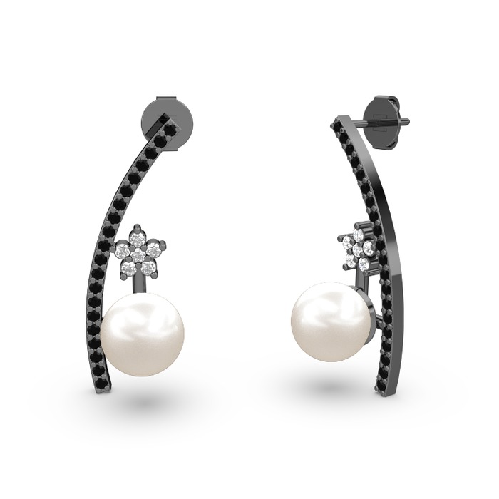 Inci, siyah zirkon ve beyaz zirkon 925 ayar siyah rodyum kaplama gümüş küpe