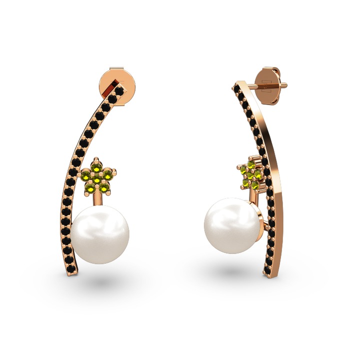 Inci, siyah zirkon ve peridot 8 ayar rose altın küpe