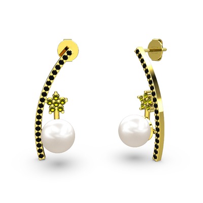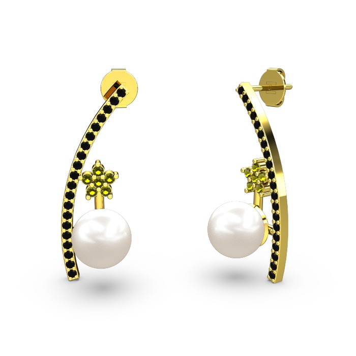 Inci, siyah zirkon ve peridot 925 ayar altın kaplama gümüş küpe