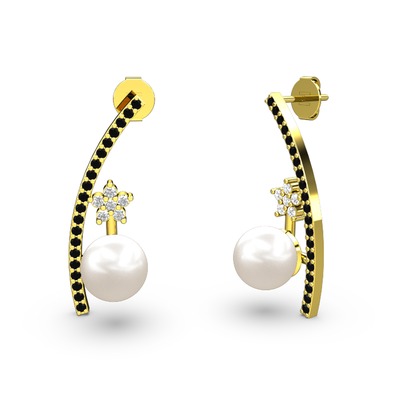 Inci, siyah zirkon ve swarovski 8 ayar altın küpe