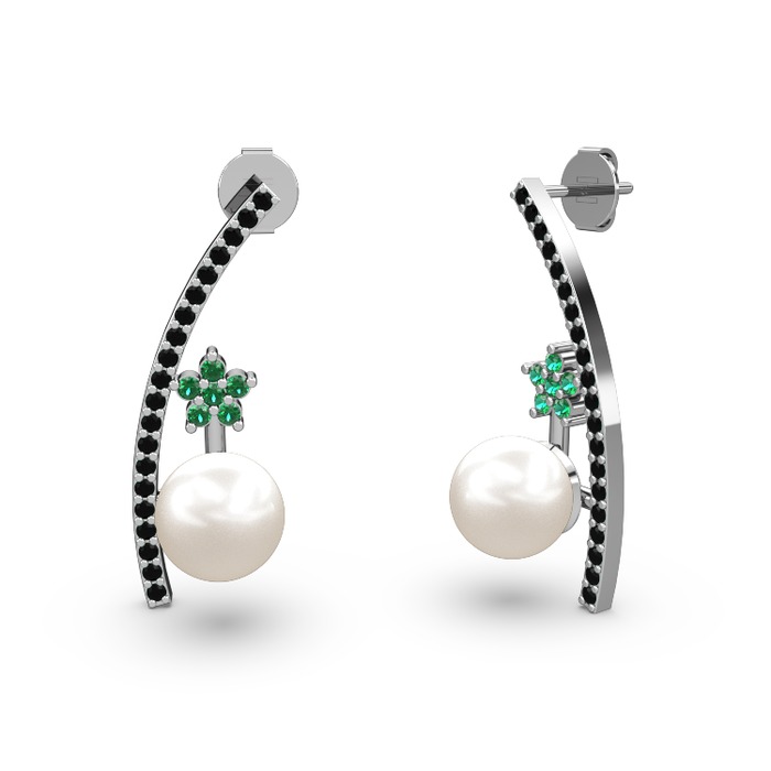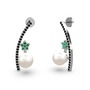 Inci, siyah zirkon ve yeşil kuvars 18 ayar beyaz altın küpe