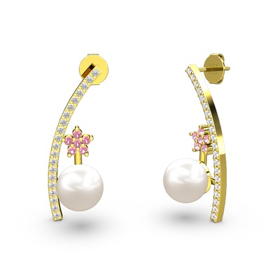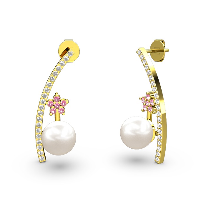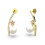 Inci, swarovski ve pembe kuvars 925 ayar altın kaplama gümüş küpe
