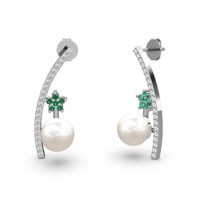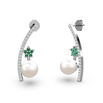 Inci, swarovski ve yeşil kuvars 14 ayar beyaz altın küpe