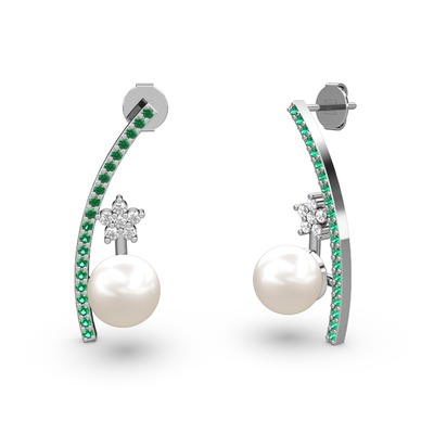 Inci, yeşil kuvars ve pırlanta 18 ayar beyaz altın küpe (0.44 karat)