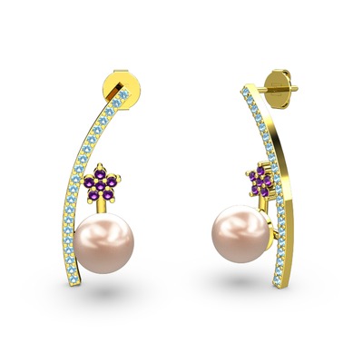 Pembe inci, akuamarin ve ametist 14 ayar altın küpe